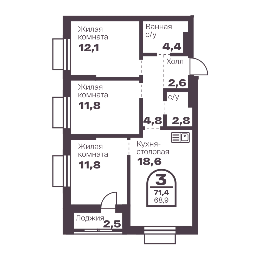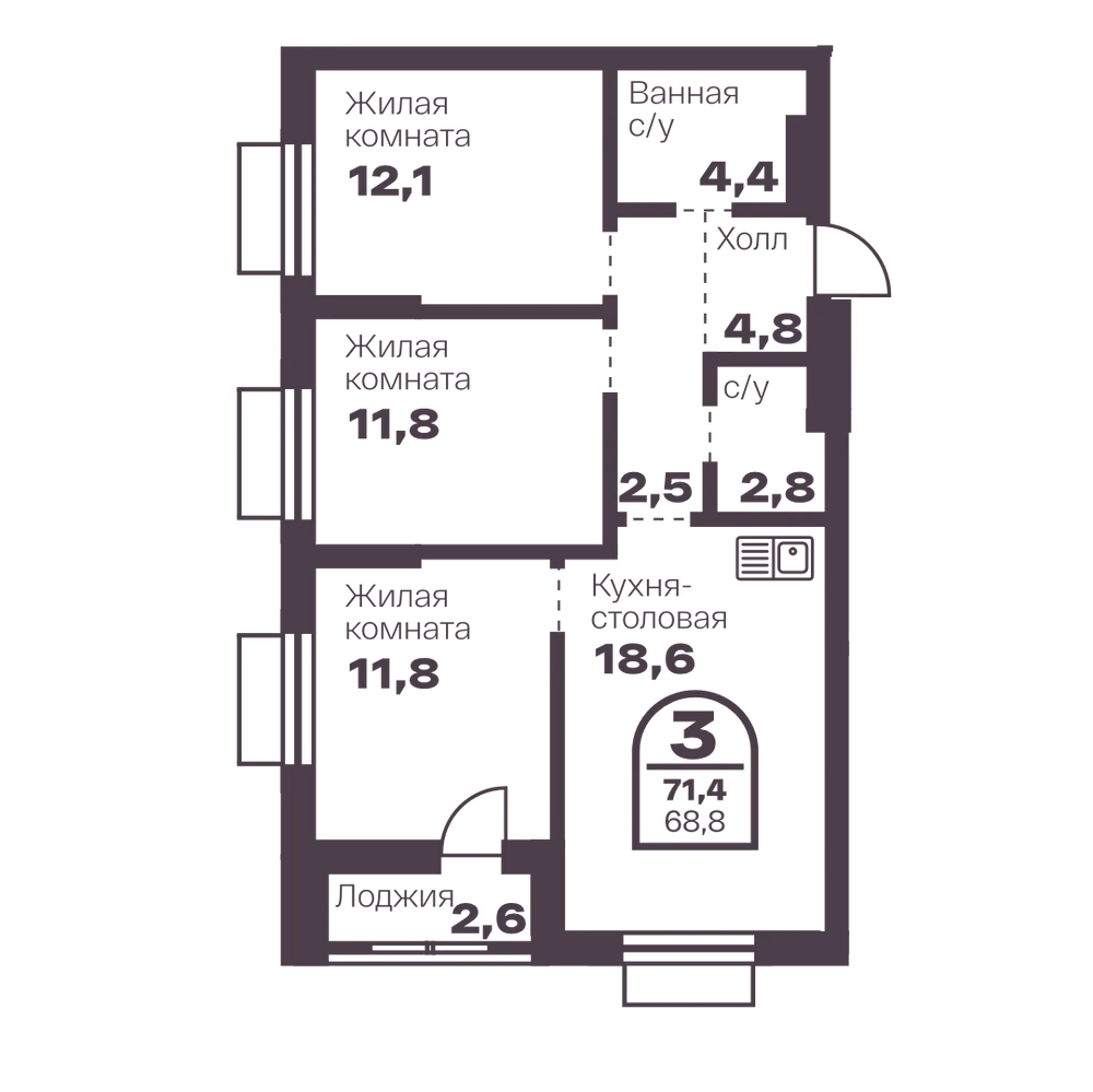 2-комнатная 62.1 м
