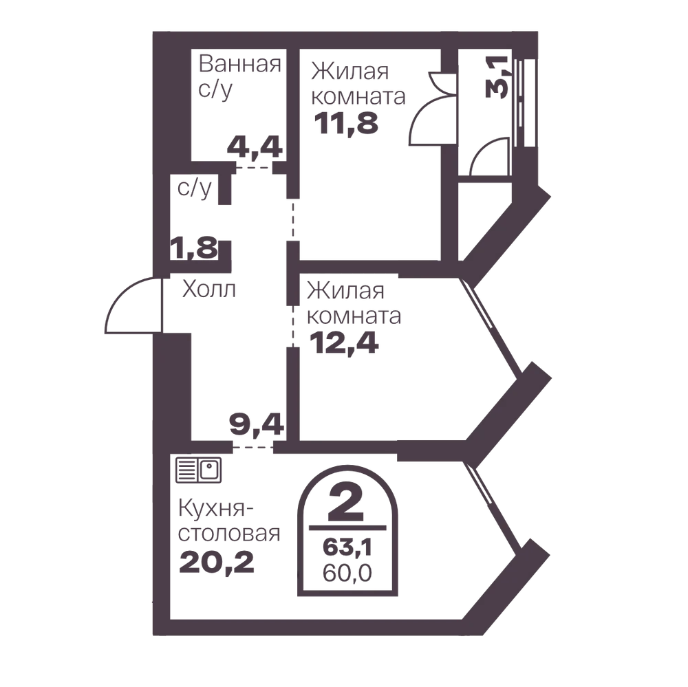 2-комнатная 63 м