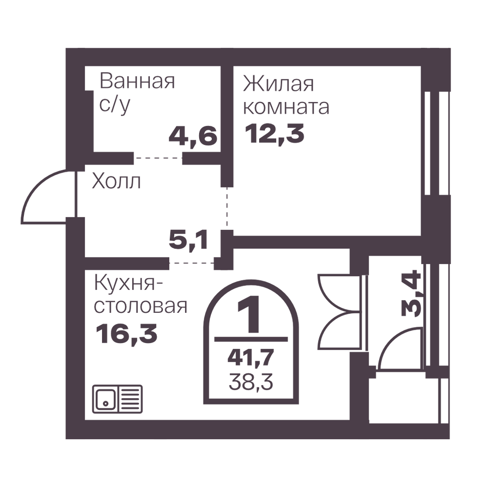 1-комнатная 36.5 м