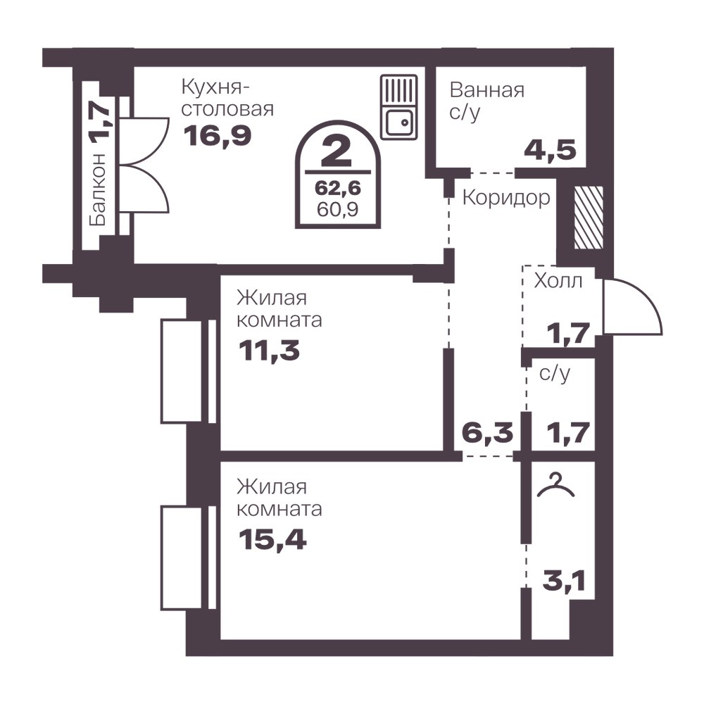 2-комнатная 58.4 м